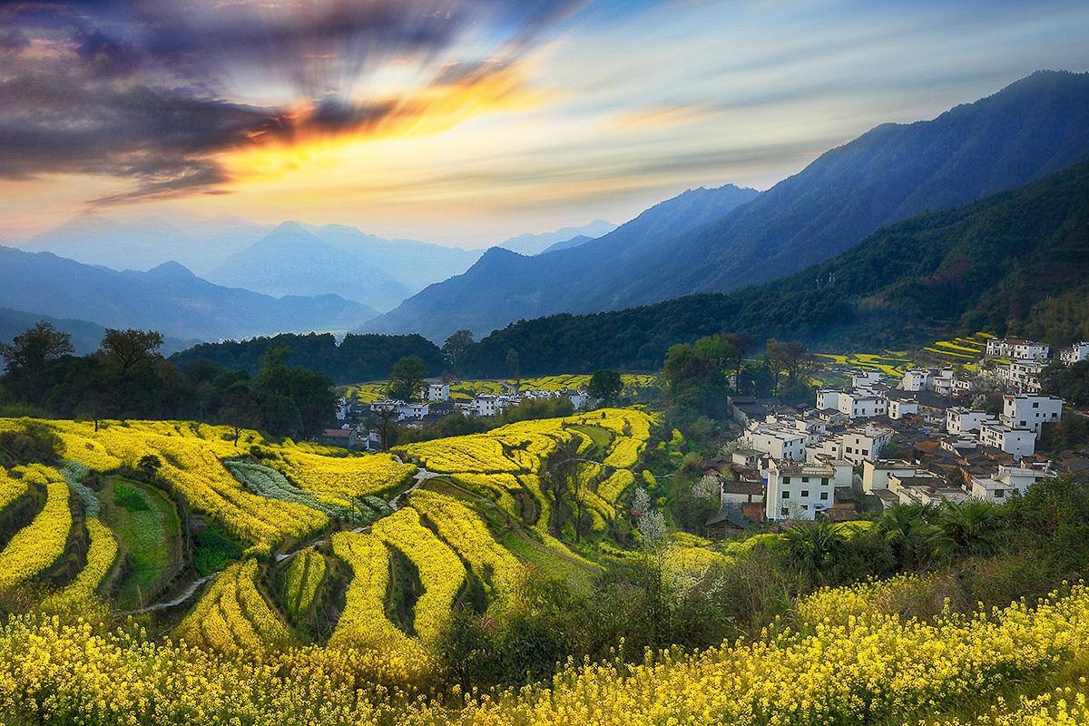徽派古村,万亩油菜花梯田