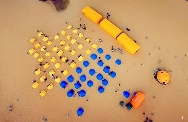 越往沙漠深处走,看到的越来越美丽,那些没有被越野车车轮压过的沙丘就像一幅完整的布疋,让人忍不住的想要去抚摸它却又怕会破坏了它的夸姣。金黄色的沙丘衬托着蔚蓝色的天空,不用润饰,这自身就现已是一副极致的著作。