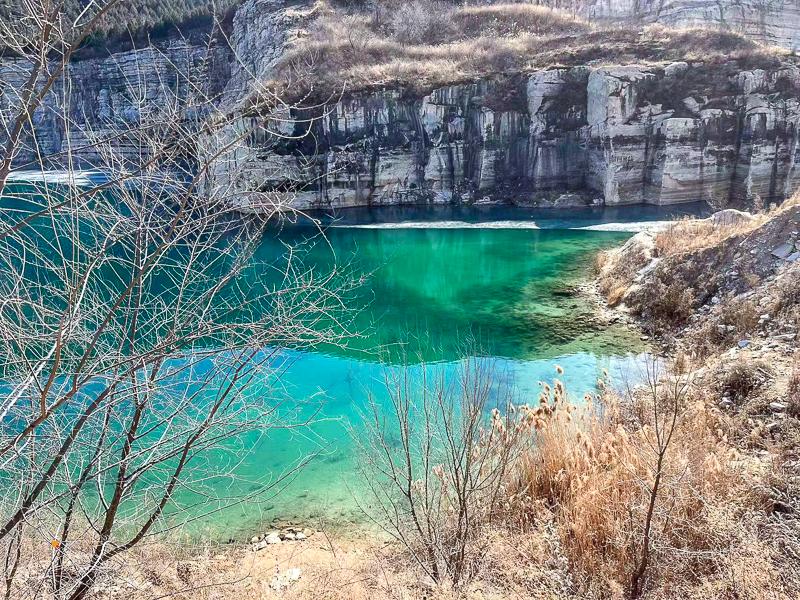 打卡北京房山高庄村小翡翠湖,昔日的矿坑今朝居然有这么美!美颜滤镜加持下的湖水美轮美奂。